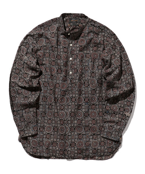 オリエンタルテイストのアジュラックプリント ■デザイン 細やかで繊細な柄が印象的な〈BEAMS PLUS〉バンドカラー プルオーバーシャツ。バンドカラーのプルオーバーシャツは、ヨーロッパのヴィンテージワークウェアをベースにしてデザインしています。 ■サイズ 身幅にゆとりを持たせたプルオーバーらしいリラックス感のあるゆったりとしたパターンを使用。 ■素材 ブロックプリントの一種であるアジュラックプリントを使用。ブロックプリントと対照的な深みのある色合いと幾何学柄やフラワーモチーフをベースにデザインしています。 Model:H178cm W63kg Size:M ※撮影環境による光の当たり具合やパソコンなどの閲覧環境によって、実際の色調と異なって見える場合があります。あらかじめご了承ください。商品の色調は白背景商品単体で撮影した画像をご参照ください。 ※この製品は、デザイン性を重視し、インドの素材を使用しています。 ・素材の特性上、ネップ(糸が部分的に太くなっている部分)、色ムラ、プリントのずれや織りムラなどが見られます。 ・色合い、風合い、サイズが一点一点微妙に異なります。また、多少のゆがみやシワ等も生じています。 ・素材の性質上、摩擦(特に湿った状態での摩擦)や、汗や雨などで濡れた場合、他の衣料やバッグなどの身の回りのものに色落ち、移染することがあります。淡色のものと重ねたり、洗濯の際に他の衣類と一緒にすると移染する場合がありますので、十分ご注意ください。 BEAMS PLUS / ビームス プラス 長年着られる飽きのこない本物の男服をコンセプトに、次世代へと続くカジュアルウェアのオーセンティックを追求しています。