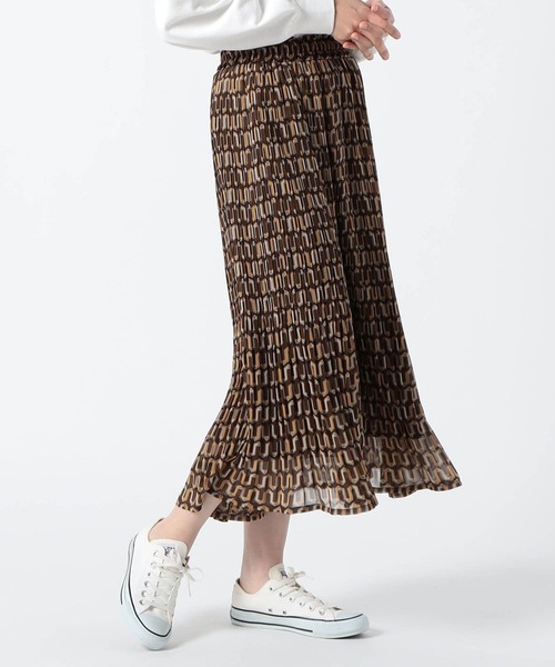 総柄シフォン シワ消しプリーツスカート 人気のシワ消し型スカートに新しくシフォン素材の総柄バージョンが登場。 「幾何学」と「イニシャルロゴ」の柄をプリントしたシフォン素材の落ち感のある総柄スカートです。 シンプルに着用したい方はムジのヴィンテージサテン(3107-0100)を、ムジをお持ちの方やコーディネートに変化を持たせたい方はこちらの総柄バージョンがおすすめです。 ■point シフォン素材を使っているので動きに合わせて揺れる軽やかな雰囲気のスカートです。 ウエストから入った細かいプリーツが裾に向かって消えるような仕様なので、着用時に腰回りのボリュームが少なく落ち感のあるスッキリとしたデザインです。 ■detail *ストレッチの効いた薄い裏地が入っており、透けを気にせず着用して頂けます。 *長時間座ってもシワが気になりません。 *ウエストは総ゴム仕様です。 *「手洗い可能」なのでご自宅でお手入れしていただけます。 ■fabric …………………… 透け感:なし 裏地:あり 伸縮性:裏地伸縮性あり 光沢感:なし 生地の厚さ:薄い 洗濯方法:手洗い可 …………………… ※詳しいお手入れ方法は商品タグをご参照ください ■coordinate *カッコいい雰囲気の総柄シフォンスカートなので、トレンチなどとベーシックなコーディネートでカジュアル通勤に使えます。 *トレーナーやスニーカー・リュックなどを合わせて、デイリーな大人カジュアルコーデが完成します。
