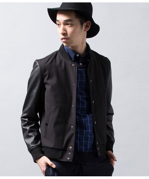 人気のスタジャンをベースに身頃がTR素材、袖がフェイクレザーにすることで素材の違いがアクセントとなりつつ、モードなニュアンスも出したアイテムになっております。ハットやシャツなどキレイメな合わせにもオススメできるデザイン。カラーバリエーションもシックなのでモノトーンなど今年らしいスタインリングを作り出せます。