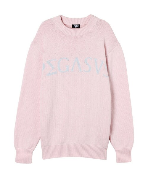 ギリシャ神話に登場する、メデューサの血から生まれたとされる翼の生えた馬“ペガサス”をギリシャ文字で編み込んだニット。 メンズのMサイズ基準で作られ、女性はビックシルエットで着られて、今年らしい雰囲気に。 軽めの編地なので寒さが続く早春にはもちろん、暖かくなってきたら袖をまくって垢抜けた印象でも着られる便利なアイテムです。 ※画像はサンプルになるため実際の商品と多少異なる場合がございます。
