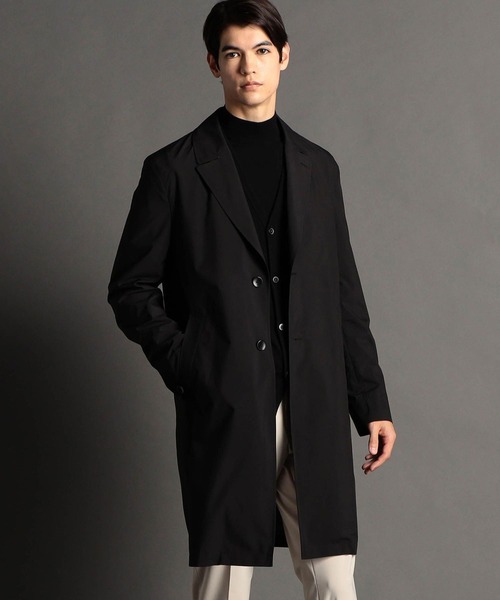 Olmetex 高機能 チェスターコート■素材イタリア:Olmetex(オルメテックス)社のポリエステルタフタ素材。透湿・防水・防風の高機能フィルムをボンディング。ごく薄いラミネートフィルムでストレッチ性があり、柔らかさと張り感の絶妙なバランスを持ち合わせています。軽くてストレスフリーな着心地です。■デザインゆとりのあるAラインシルエットのチェスターコート。背裏部分にメッシュ素材を使用し、収納できるポケッタブル仕様になっています。・前裏、背裏付・ポケット数:腰×2 内側×2透け感:なし伸縮性:あり生地の厚さ:薄手裏地:あり【Olmetex/オルメテックス】1950年創業、先染め高密度コットンギャバジンなど高機能素材を得意とする世界的なファブリックメーカーです。※画像の商品はサンプルです。実際の商品とは仕様・加工・サイズ・素材が若干異なる場合がございます。※照明の関係により、実際よりも色味が違って見える場合があります。またパソコン・スマートフォンなどの環境により、実際の商品と色味に若干の誤差が生じる場合があります。予めご了承ください。