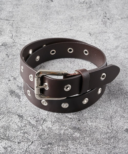 ---豊富なデザインバリエーションが魅力のレザーベルト--- 【素材】 厚みのあるしっかりとした手持ち感あるカウレザーを使用しております。 使い込むことでの経年変化を楽しめ、長く愛着を持ってお使い頂けます。 【デザイン】 存在感ある帯に帆型、スクエア型のバックルを装着。ヴィンテージ加工、フラワースタッズ、ハトメ、スタイリングに合わせてお選びいただけます。 またサイズ調整ができるので、女性の方にもおすすめ。 メンズ、レディース問わずユニセックスでご使用いただけるアイテムです。 【コーディネイト】 普段からジーンズやチノパンを穿いているカジュアルスタイルの方におすすめです。 アメカジスタイルは勿論、カーゴパンツとの相性も良くミリタリーテイストにもピッタリな仕上がりです。