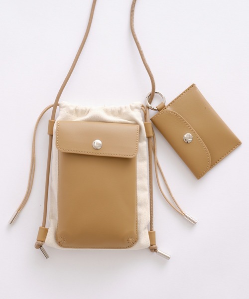 前面にスマホポケットが付いた巾着タイプのショルダーバッグ。異素材や柄を組み合わせたデザインはコーディネートのポイントにも◎カジュアルスタイルに合わせやすいデザインです。取り外しができるポーチにはICカードやリップなどが入れられます。ショルダー紐は調節可能なので、斜め掛け、肩掛けどちらもOK! 【cache cache / カシュカシュ】 カシュカシュとはフランス語で「かくれんぼ」。ガーリッシュとちょっと背伸びをした大人っぽさをミックスしたデイリーカジュアルなファッション小物を展開。カラフルで素朴なハンドクラフトやかわいらしいモチーフ使いで、洋服とのコーディネートに可愛らしさと遊びをプラスするバッグを提案。
