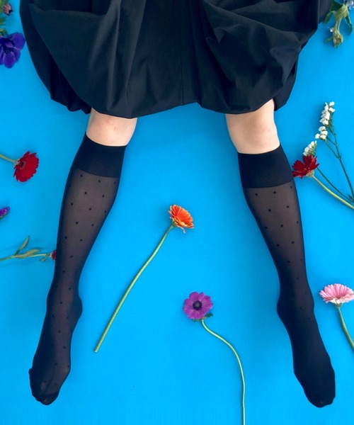 SWEDISH STOCKINGS(スウェーディッシュ ストッキング) シアードット柄 ニーハイソックス ブラック 40デニールのドット柄ニーハイソックス。 履き込み口のバンドが幅広く脚に固定され、つま先補強もされています。 【SWEDISH STOCKINGS】 2014年スウェーデンにてスタート、ミレ二アル世代の女性が作るエシカルなレッグウエアブランド「スウェーディッシュ ストッキング」。石油由来の素材を使うため土に還らないストッキングは、年間20億個ゴミとして埋め立て地に捨てられます。その事実を目の当たりにした二人がリサイクル素材を使用し環境負荷の少ない製法で、新たなストッキングを作り、古くなったストッキングを他の素材に変えるリサイクルシステムを作りました。デザイン的にもファッション性が高く、世界的に高い評価を受けています。 ※照明等の条件により写真と実際の商品とは色味、サイズ等若干異なる場合があります。予めご了承ください。ご利用いただいているモニターの環境によって色が再現できない場合がございます。