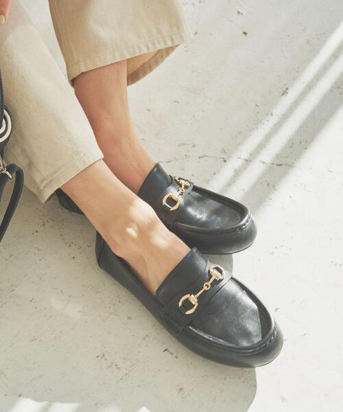 色々なスタイルに対応する定番の一足 ■デザイン/素材 シンプルなビットローファーは、程よいボリューム感のソールでアップデート。 見た目に反して軽量で、クッション性のあるインソールも履き心地◎です。 ■スタイリング きちんと見えをしながら、履き心地は楽ちんなのでオンオフ兼用でデイリー使いに活躍する一足。 カジュアルなスタイリングに足元に添えて、ワンランク上のミックススタイルをお楽しみください。 【注意点】 ※撮影商品はサンプルの為、実際の仕様と異なる場合がございます。 ※画像の商品は光の照射や角度、お使いのモニター環境により、実物と色味が異なる場合がございます。スタジオ物撮りの画像が実物の色味に一番近くなっております。 ※予約商品の場合、お届け予定はあくまでも目安となります。 生産の都合上、お届け時期が前後したり実店舗入荷時期とずれる場合がございますので、あらかじめご了承ください。 品名:ビット ローファー 品番:7682-637-0177