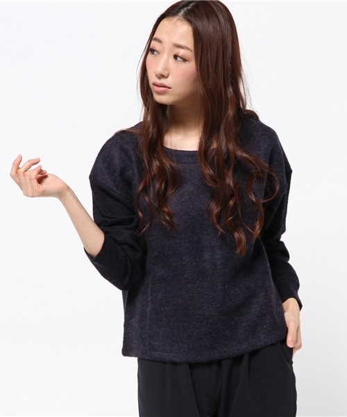 Discoat(ディスコート) ふっくらシャギーのとスムース切替があたたかな1枚☆ゆるシルエットとドロップショルダーがリラックス感のある装いに。絶妙な丈感はパンツスタイルに、スカートスタイルどちらにもコーデしやすくデイリーにおすすめです♪