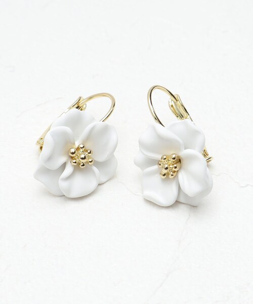 花モチーフで華やぐピアス 【デザイン】 花モチーフが目を惹くピアス。 マットなカラーが上品で、大人も取り入れやすいアイテムに。 店舗へのお問い合わせ商品番号:C59-36007 ●製品寸法: 00:全長2.5cm モチーフH1.8cm モチーフW1.6cm 備考: