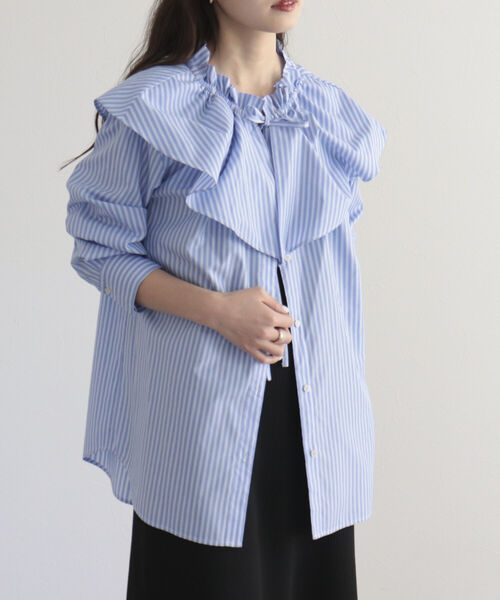 ◇fredy emue◇ 【2023 SS】 1枚で様々な着こなしが叶うフリルカラーブラウス ●point ・程よく甘く、カジュアルなビッグカラーのブラウス ・首元を紐で調節できるので様々な着こなしができます ・紐を伸ばしてオフショルに、紐を垂らしてカジュアルに、キュッと閉めてスタンドフリルにと様々なパターンで楽しめます ・ふわっとしたシルエットがでるようにハリのある生地を使用しました ・デニム合わせがシーズンライクで程よくジュカジュアルでこなれた雰囲気になりオススメです 透け感:なし 裏地:なし 伸縮性:なし 光沢感:なし 生地の厚さ:普通 洗濯:手洗い可 ●お取扱い上のご注意● *商品を長くご愛用していただきたいため、アテンションタグがある場合は必ずご確認の上、着用又はお取り扱い下さい。 *店頭及び屋外での撮影画像は、光の当たり具合で色味が違って見える場合があります。商品の色味は、スタジオ撮影の画像をご参照下さい。 *商品画像に関しては出来る限り忠実に表示出来るよう努めておりますが、お客様がご利用のモニターの設定及び特性により、実際の商品と比較し色味に若干の誤差が生じる場合があります。 *画像の商品はサンプルとなりますので実際の商品と仕様、加工、サイズが若干異なる場合がございます。 ◇商品のお気に入り登録◇ 【お気に入りに登録 ♡マークをクリック】を是非ご活用ください! 再入荷の通知や、ラスト1点の通知、セールの通知がいち早く届きます。 ◇ブランドのお気に入り登録◇ 新商品や再入荷など、いち早くブランドのお得情報が届きます。