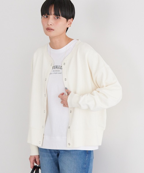 リングドットがアクセントになった裏毛カーディガン。 脱ぎ着も楽にすることができるのも便利なポイント。肌触りの良い裏毛素材でさらりと着用できるのも魅力のひとつです。 綺麗な発色でコーディネートのアクセントにも映えるワードローブの頼れる味方◎ 透け感[無し] 裏地[無し] 伸縮性[やや有り] 光沢感[無し] 生地の厚さ[普通] 付属品[無し] ポケット[無し] ●製品寸法: L:バスト63 着丈58.5 袖丈52 肩幅57.5 裾幅53.5 備考:
