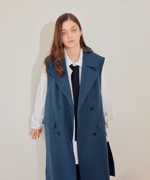 【Set Up、Unisex】ドレープダブルクロスロングジレ ■素材、機能 トロミ感を出しながらもしっかりとした肉感を維持した上質な素材です。 ツルッとした表面でシワにもなりずらく適度なストレッチ性もあるので着用感が抜群です。 ■シルエット、デザイン トレンチコートをベースにデザインしたトレンド性の高いベストになります。 ドレープ感を演出したヨークデザインでトレンチらしさも残しつつ袖まわり、ビッグスリットなどでモードな印象に仕上げました。 丈感も短すぎず一枚で存在感をアピール出来る一着です。 ■カラー コーデし易いカラートーンに抑えた2色展開になります。 ■スタイリング シンプルにドレープ感のあるルーズなシャツと合わせたコーデで十分決まります。 また同素材のパンツと合わせたセットアップでさらにモード感をアップさせ独自のスタイルを演出できます。 裏地:あり 透け感:なし 伸縮性:なし 生地感・厚さ:普通 ポケット:あり その他仕様:なし 【モデル着用サイズ】 MEN:身長175cm 着用サイズL WOMEN:身長172cm 着用サイズL ※撮影場所やライティング、お使いのモニター環境によって色の見え方が異なる場合がございます。 ※画像の商品はサンプルです。 実際の商品と仕様、加工、サイズが異なる場合がございます。