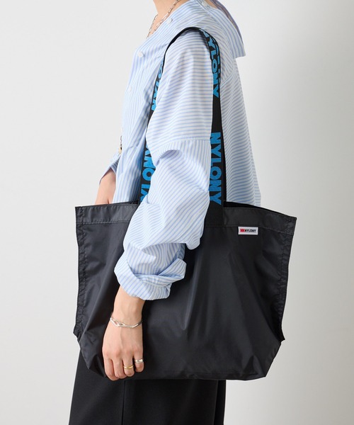 スタイリングのアクセントになるNYLONYのトートバッグ・再生ナイロンを使用した、地球にも環境にも優しいサスティナブルなラインナップ。・耐久性が高く、さらに軽量素材のため持ち運びしやすいのが嬉しいポイント。・スタイリングのアクセントにもなるビビットなカラーにも注目◎・テイストを選ばないシンプルなデザインで合わせやすさも◎【NYLONY】リサイクルナイロンを中心としたブランド。耐久性の高いナイロン素材を軸にしたプロダクトを製作し、不定期に発信します。あらゆる日常の背景に馴染むよう、無駄を削ぎ落したシンプルかつ機能的なデザインが特徴です。「ナイロン素材の持つ耐久性」と、「飽きのこないデザイン」で、長く使える日常製品。日々の暮らしに利便と解決をもたらします。-------------------------------------- 【商品のお気に入り登録】♡をクリックで気になるアイテムをお気に入り登録していただくと、以下の通知を受け取ることができます。・入荷・再入荷・ラスト一点・セール対象時【ブランドのお気に入り登録 】 新商品や再入荷、セール、クーポン配布などお得な情報を受け取ることができます。--------------------------------------※商品の色味は、撮影場所や光の当たり具合などにより色味が異なって見える場合がございます。また、お客様のお使いのPC・スマートフォン等のモニター環境などにより色味が異なって見える場合がございます。予めご了承の上ご注文ください。