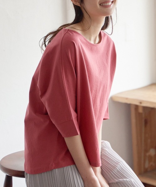 【上げない値!対象】お値段据え置きで提供しています!さらっと素材のドルマンスリーブプルオーバー。前後差のある着丈でメリハリ良く着ていただけます。【素材】ハリ感と表面の梨地の凸凹感がポイントになった、清涼感のある素材です。【デザイン】体型をカバーする、ゆったりとしたドルマンタイプのカットソー。太めのカフスがポイントで、サラッと綺麗なボートネック襟です。【ikkaポイント】キレイめ見えする素材を使用しながら、体型をカバーできる優秀トップス。袖はカフスにしているので、シンプルの中にもワンテクの効いた汎用性のあるデザインにしております。後ろの着丈が長く、お尻が隠れるサイズ感です。【おすすめコーディネート】シンプルなデザインのため、手持ちボトムとも難なくコーディネートが可能!前後差のある着丈は、ボトムアウトで着ても今っぽさをキープできるのが魅力です。■スタッフ着用コメント・159cm/サイズM伸縮性があり、裏面は滑らかな手触りが心地よく、カットソーながらも「キレイ見え」する1枚!他アイテムのとの色合わせを楽しめるデザインで、デイリーから休日スタイルまで幅広く活躍します。首回りがすっきり見えるボートネック型でスタイルアップ!トレンドのシャツと合わせてラフに着こなすのがおすすめです![洗濯方法]洗濯の際はネットを使用してください[クリーニング]洗濯機洗い可(非常に弱く)、ドライクリーニング可(F)、ウェットクリーニング(W)