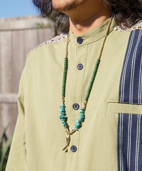 ネイティブアメリカンが大切にしているモチーフ、力と勇気の象徴『ベアクロー(熊の爪)』がポイントのロングネックレス。ターコイズのさざれ石とカラービーズを組み合わせた個性あふれるデザイン。 カジュアルコーデやフォークロアスタイルのアクセントに◎ ※こちらの商品は1点1点職人による手作りとなります。その為、形や色合いなど若干異なる場合がございます。あらかじめご了承ください。※屋外での撮影画像は、光の当たり具合で色味・カラーが違って見える場合がございます。商品のカラーは、スタジオ撮影の画像をご参照ください。 Amina Collection Co.,LTD.