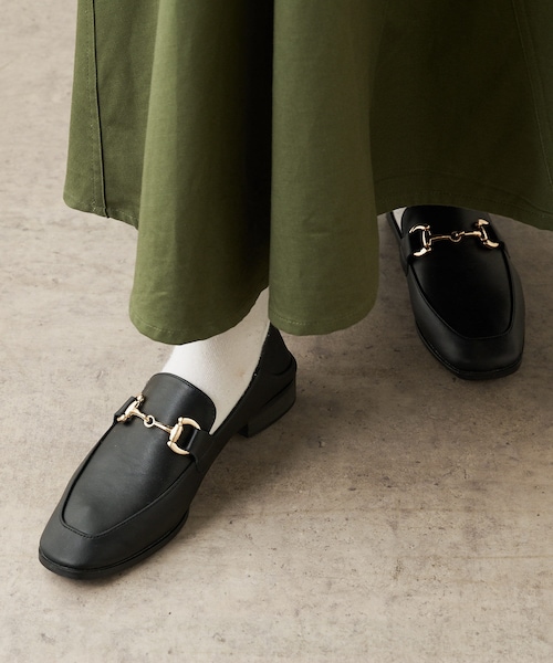 カジュアルなスタイリングにも、きちんとした場面でも使えるビットローファー。スッキリしたデザインで大人っぽい印象ながら、ビットデザインがアクセントに。やわらかなフェイクレザー素材を使用しているので快適な履き心地。かかとを折りこんでミュールのようにも履ける2WAY仕様になっています。================================================身長:152cm/普段着用サイズ:22~22.5cm足の甲が広めですが、柔らかい素材のおかげで窮屈感なく履けました。靴下を合わせるなら薄手がおすすめです。================================================