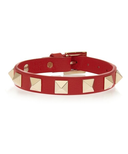 Valentino's Italian-made 'Rockstud' bracelet is crafted from rich orange leather and punctuated with pale-gold pyramid studs . We think it looks chic stacked with a mannish watch. Orange leather (Calf) Buckle fastening