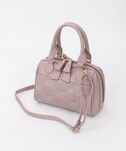 【アイテム説明】 薔薇モチーフのキルティングデザインが華やかなボストンバッグです。 コロンとしたフォルムに、程よいサイズ感◎ 装飾されたゴールドのロゴプレートが高級感をプラス。 ファスナーの持ち手部分は、リボンモチーフになっています。 付属のベルトでショルダーバッグとしても使用できます。 【素材】 裏地 なし 透け感なし 伸縮性なし ※サンプルにて撮影のため、実際の商品と仕様、加工、サイズが若干異なる場合があります。
