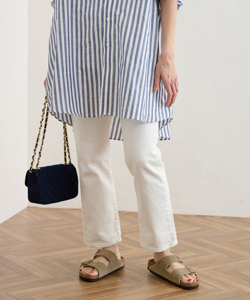 【2022AW】FRAMeWORKデニムらしい生地感と穿きやすさを兼ね備えたクロップドデニム。しっかりめの生地感ながらもストレッチが効いているので、ストレスのない穿き心地が魅力です。ナチュラルなスラブ感のある縦糸を、ロープ染色という手法でインディゴ染めにすることで自然な落ち感を楽しめる一本に。少し膝の入ったクロップド丈で、ブーツ合わせやソックス合わせのバランスが取りやすいアイテムです!**********************透け感:なし裏地:なし伸縮性:あり光沢感:なし生地の厚さ:普通**********************※取り扱いについては、商品についている品質表示でご確認ください。※こちらの商品は、FRAMeWORK での取り扱いになります。直接店舗へお問い合わせの際は FRAMeWORK 店舗へお願い致します。※照明の関係により、実際よりも色味が違って見える場合があります。またパソコン・スマートフォンなどの環境により、若干製品と画像のカラーが異なる場合もございます。予めご了承の上ご注文ください。※商品の色味は、商品アップ画像をご参照ください。本体:洗濯機洗い(弱)
