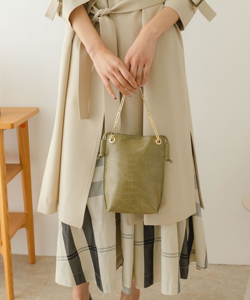 アクセサリー感覚で持てるチェーンショルダーバッグ〇ちょうど良いサイズ感のミニバッグ〇チェーンとショルダーの2WAY仕様〇高級感のある型押し生地スマートフォンやミニ財布、リップ等の最低限の必需品が収納できる、ちょうど良いサイズのミニバッグ。型押し素材がアクセントとなり、持つだけでスタイリングにこなれ感をプラスしてくれます。気分に合わせてアクセサリー感覚で取り入れていただけます。シーズンレスで合わせやすい3色展開でご用意しました。※この商品は、摩擦や汗、雨などの使用条件等により、色落ちや他の物への色移りの可能性がございますのでご注意ください。※消毒液をご利用の際、消毒液が乾いていない状態や、手が濡れたままの状態、消毒液自体がついてしまうと、消毒液の成分により表面が変質してしまい、色移りや変色の可能性があります。ご使用の際は十分にご注意ください。※その他お取り扱いに関しましては、商品に付属のアテンションタグをご覧ください。総重量 : 約200g※商品画像は、光の当たり具合やパソコンなどの閲覧環境により、実際の色味と異なって見える場合がございます。予めご了承ください。※商品の色味の目安は、商品単体の画像をご参照ください。▼お気に入り登録のおすすめ▼お気に入り登録商品は、マイページにて現在の価格情報や在庫状況の確認が可能です。お買い物リストの管理に是非ご利用下さい。