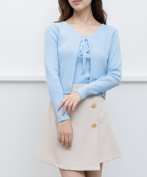 シンプルだけど可愛い♪リボンニットカーディガンセット【デザイン】ベーシックなスタイルのキャミソールとカーディガンがセットになったアイテム。一緒にご着用いただくのはもちろん、別々で着こなしていただくのも◎一つ持っておくだけで、コーデの幅が広りやすく、使い勝手も抜群です。【素材感】伸縮性のあるニット素材伸縮性:あり / 透け感:なし / 裏地:なし水洗いによる洗濯不可 / ドライクリーニング可【コーディネート】パンツやスカート問わずどんなアイテムともバランス良く合わせやすいです。温度差によって調節がききやすいため、特に春先から初夏のコーディネートに活躍すること間違いなし♪【※お取り扱い上のご注意】1:モニター環境等により実際の商品と多少色味が異なって表示される場合がございます。予めご了承下さい。2:屋外で撮影された商品は、天候により多少実際のカラーと異なる場合があります。商品のカラーはトルソー(マネキン)の商品画像をご参照ください。3:濃い色の商品は、お洗濯や摩擦等による移染にご注意ください。4:末永くご愛用頂く為に、アテンションタグ・洗濯ネームを必ずご確認の上、着用又はお取り扱い下さい。5:生産時期により、色、サイズ、デザイン、素材の質感が多少が異なる場合がございます。あらかじめ御了承下さいませ。