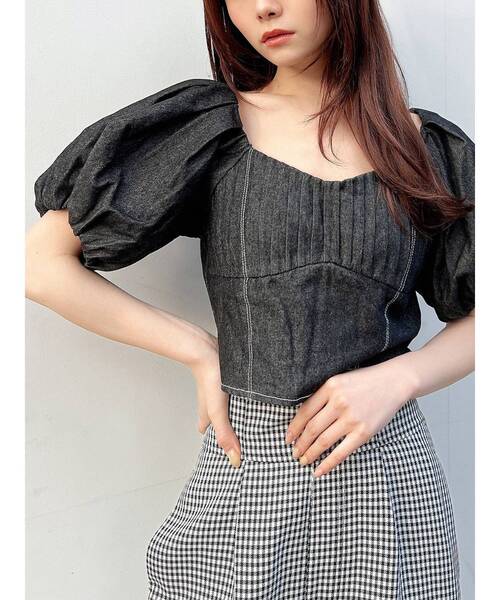 程よいボリュームのあるデザインがポイントのデニムブラウス ▽デザイン▽ バスト部分全体にタックを入れ凝ったデザインに。 袖部分はタックとバルーンスリーブでボリューム感のある袖に仕上げ 存在感あるブラウスに仕上げました。 ショルダー部分に平ゴムを通しているのでオフショルでも着用できる2WAY仕様。 ▽カラー▽ インディゴ・黒・白の3色展開。 配色のステッチがアクセントになります♪ ▽スタイリング▽ クロップド丈なのでアウトスタイリングがオススメ! ハイウエストボトムとの相性抜群◎ どんなボトムスにも合い、一気に季節感の出る ブラウスなので1枚持ってると重宝すること間違いナシ! ※インディゴ・ブラックカラーはデニム素材、 アイボリーはカツラギ素材を使用しております。予めご了承ください。