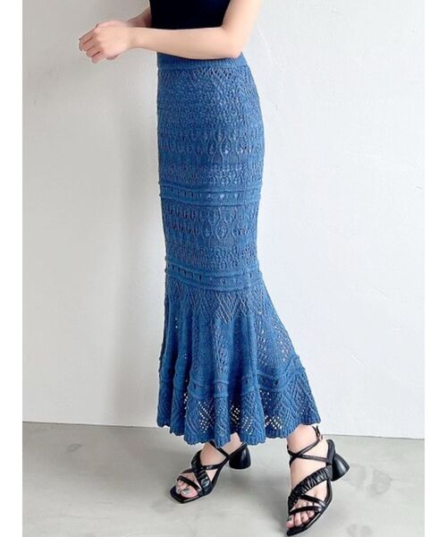 鈎針風シリーズのスカートが今年も登場! ▽Point▽ ナチュラルなマーメイドシルエットなのでコーディネートにも馴染みやすく、 合わせるだけでシーズンムードが高まる1着です。 裾にかけて広がるフレアラインなどエレガントなディテールを使い、 女性らしい上品なアイテムに仕上げました。 裾の透け感がこれからの季節らしさをUP! 今年はブルーが新登場です。
