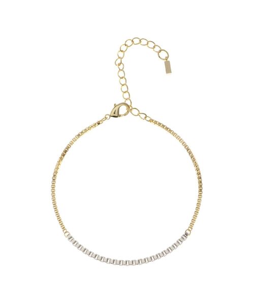 四角いコマのチェーンで、シルバーとゴールドの配色になっているシンプルなデザイン。 線が細すぎない程よいサイズ感のチェーンは、スタイリングのアクセントに。 ※個人差はありますが、ニッケルフリーメッキでアレルギーが起こりにくい仕様。 ポストはチタン