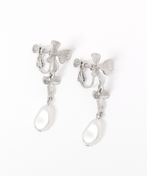 セレモニーやオケージョンシーンにオススメーーーパールが、耳元で揺れる上品な印象のイヤリング。形の違う大小のお花モチーフのメタルパーツに変形パールを組み合わせました。メタル部分をややマットにすることで、強すぎずナチュラルな雰囲気に仕上げています。ーーー