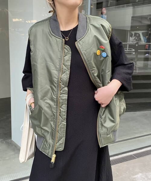 デザイン性と機能性を兼ね備えた、都会的な雰囲気が特徴のMA1ベスト商品ポイント・定番のMA-1ジャケットの袖をカットオフし、同色のパイピングを施したデザイン・POPなデザインのバッチは好きなところに付けられ、程よいアクセントに・身幅の広いリラックスシルエット・表地は光沢のあるナイロン素材・裏地はこだわりのオレンジ色のリバーシブル仕様・ちらっと除くオレンジ色がコーディネートのアクセントにスタイリングポイント・ワンピースと合わせて女性らしさをプラスしたスタイリングに・デニムなどと合わせたアメカジスタイルもおすすめ**********************透け感:なし裏地:あり伸縮性:なし光沢感:なし**********************※撮影場所やお使いのモニター環境により若干お色味が異なる場合がございます。特にロケの撮影では明るく見える傾向にございます。※商品はサンプルで撮影をしております。若干の仕様が変更になる場合がございますので予めご了承の上ご注文くださいますようお願いいたします。▼商品のお気に入り登録完売カラーの再入荷通知や、ラスト1点の通知、セールの通知も受け取ることができます。▼ブランドのお気に入り登録新商品や再入荷など、いち早くブランドのお得な情報を受け取ることができます。