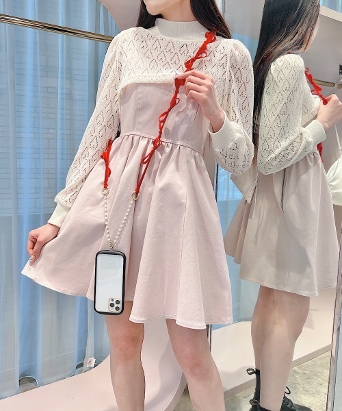 2023 Spring Collection ハート模様の透かし編みが可愛いショート丈トップス。ハイネックデザインでワンピースやトップスとレイヤードを楽しめる一枚。一枚あると着回しの幅が広がり、春先のコーディネートにマストなアイテムです。