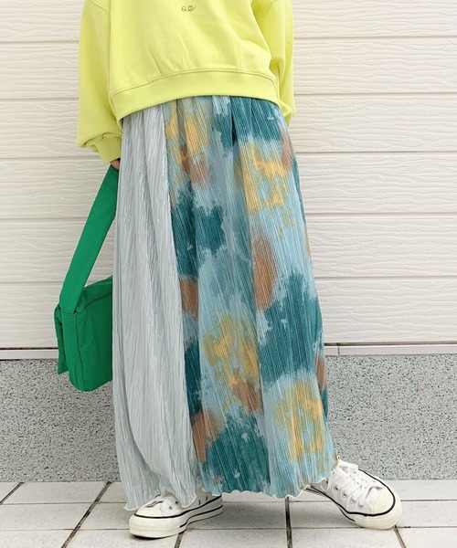 ぼかしたようなニュアンスカラーの総プリント生地に、細やかなマイクロプリーツを施したロングスカートです。背面なシンプルな無地で切り替えているから、前後でギャップのあるモダンなスタイリングが楽しめます。《インフォメーション》◆商品のお気に入り登録完売していても再入荷時に再入荷通知を受け取ることができますので、是非ご登録ください。◆ブランドのお気に入り登録新商品や再入荷などの情報を受け取ることができますので、是非ご登録ください。