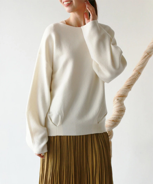 静電気がおきにくいやわもちニット 素材よし!シルエットよし! もちもちな感触のニット生地を使用 裾にタックが入ることで腰にフィット。 INしなくても抜け感でサマになる一枚。 ベーシックなシルエットで着回し力も抜群! [サイズ(cm)] M:着丈57 バスト100 裄丈81 袖口幅11.5 [お手入れ方法] ドライクリーニングにてお手入れして下さい。