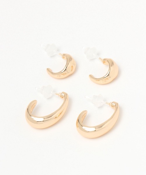 樹脂ポストタイプのピアス。ぷっくりとしたフープモチーフが可愛らしい、4点セットのアイテムです。