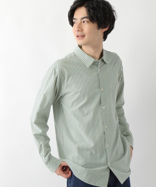 シルエットやディテールを見直したキレイ目シャツの新定番 【素材】 シワになりにくくサラッと快適な着心地のシャツ。 形態安定性の高いポリエステルの糸をレーヨン素材でカバーすることで肌ざわりよく仕上げています。 【デザイン】 程よいリラックス感のあるシルエットなのでインナーでも羽織りでも使いやすい一枚。 パンツにインしてもアウトしても着用できるように、裾はゆるやかにカーブをかけています。 襟や前たては、ステッチレスでクリーンなデザインとなっています。 【スタイリング】 アーバンスラックスと合わせることでキレイ目に着こなすのが定番の合わせ方です。 幅広いパンツと相性が良いので、ワイドパンツと合わせることで抜け感を出すのもおすすめです。 ※グレー系その他4、グリーン、ブルー、ネイビー、ダークブルーは生地に柄がついております。 詳しくは生地寄り画像をご確認ください。 ----------------------------- 裏地:なし 透け感:透ける 伸縮性:あり 生地感・厚さ:普通 ----------------------------- ※ライトグレーで計測しています。 ※こちらは参考情報となります。カラーにより多少の誤差がございます。 【お買い物が便利になる機能がたくさん!】 ▼商品のお気に入り登録▼ 完売アイテムの再入荷通知、ラスト1点、またクーポンやお値下げ通知をお知らせします。 ▼ブランドのお気に入り登録▼ 新商品や再入荷のお知らせ等、いち早くブランドのお得な情報を受け取ることができます。 ぜひご登録ください。