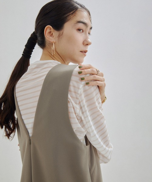 無地・ボーダーの豊富な5色展開!抜け感たっぷりなシアー/シースルー素材が爽やかな印象のシアークルーネックロンT■デザイン/シルエットシンプルなクルーネックのベーシックT型で、シアーな素材感を引き立たせました。ややゆとりのあるサイズ感とコンパクトなクロップド丈でメリハリのあるシルエットに。少しつまり気味のクルーネックが大人な印象です。春らしい優しいカラーリングに、シアー感のあるボーダーもポイント。ベーシックなホワイト、春らしいピンク、イエローの無地3色とスタイリングのポイントになるブラック、ベージュのボーダー2色の豊富な5色展開です。■素材シフォンのようなシアー感がポイントのポリエステルの薄手のカットソー素材。ほどよい伸縮性があり、心地よい着用感がポイントです。■コーディネートセットアップスタイルのインナーやオールインワンのインナーにオススメです。コンパクトな着丈なのでアウトで着てもスッキリとまとまります。インナーにアシンメトリーなキャミソールを合わせると、より鮮度のあるレイヤードスタイルに!■モデル身長:172cm 着用サイズ:F■モデル身長:170cm 着用サイズ:F(イエロー・詳細)-----------------------------裏地:なし光沢感:なし透け感:あり伸縮性:ややあり生地の厚さ:薄手-----------------------------