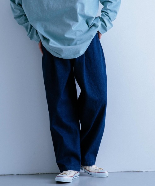 軽過ぎず重過ぎない汎用性が高いデニム生地を使用したタックワイドパンツ。およそ11.5オンスのレギュラーオンスデニムを使用。デニムの無骨さもありながら履きやすく使い勝手の良さが魅力。ワイドシルエットに加え、旬顔にアップデートしてくれるフロントタックでコーディネートに表情をプラス。定番のライトブルー、ネイビー、アイボリーの3色で展開。※この商品(IVO)は、強い日光や照明を長時間受けますと変色の恐れがありますので、ご着用及び保管の際はご注意ください。※この商品(NVY, L.BLU)は、デニム素材を使用しているため、汗や水分、摩擦等により、他の衣類へ色移りすることがあります。ご着用の際は充分にご注意ください。※商品画像は、光の当たり具合やパソコンなどの閲覧環境により、実際の色味と異なって見える場合がございます。予めご了承ください。※商品の色味の目安は、商品単体の画像をご参照ください▼お気に入り登録のおすすめ▼お気に入り登録商品は、マイページにて現在の価格情報や在庫状況の確認が可能です。お買い物リストの管理に是非ご利用下さい。-----------------------------透け感:なし伸縮性:なし裏地:なし光沢:なしポケット:あり-----------------------------