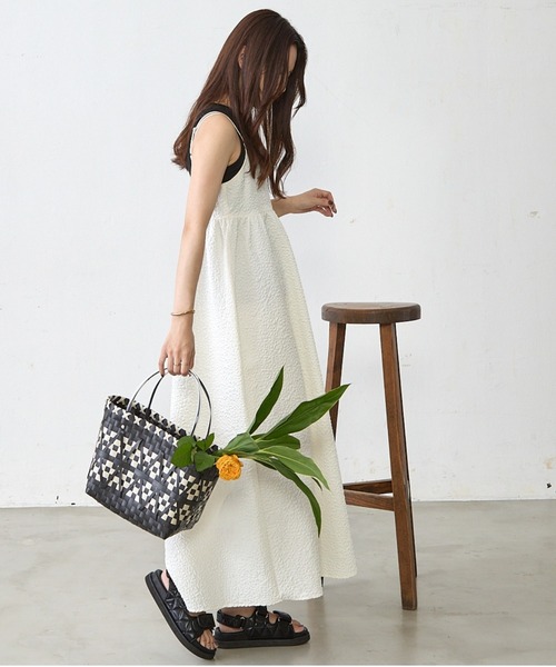 【Shelly island /シェリーアイランド】《detail》・程よくハリがあり、トレンドなジャガード素材はさりげない花柄で甘すぎずモードな印象に。・フロントのホルターネック紐は取り外しが可能で、よりシンプルなキャミワンピとして着用頂けます。・ウエスト位置も高めなのでスタイルアップ効果も◎・華奢な肩紐で甘くなりすぎず、大人な印象のキャミワンピースに仕上げました。・合わせるインナー次第で通年活躍するアイテムです。《fabric》 程よいハリのある生地感。ポコポコと凹凸のあるジャガード素材。・透け感:ホワイトのみやや透け感あり・裏地:なし・伸縮性:なし・生地の厚さ:薄手◆商品のお気に入り登録 完売カラーの再入荷通知、残り1点の通知、セール等値下げした時の通知も受け取ることができます。◆ブランドのお気に入り登録 新商品や再入荷など、いち早くブランドのお得な情報を受け取ることができます。 是非ご活用ください。※サンプルにて撮影をしておりますので、実際の商品と柄の出方が異なる場合がございます。※この商品は、摩擦や、汗・雨などによる水ぬれにより色落ちが生じる場合がございます。 衣服や周囲のものに色移りする恐れがありますので、白色や淡色のものと組み合わせる際は、十分にご注意ください。※撮影環境により多少実際のカラーと異なる場合がございます。※生産時期により若干の色ブレやサイズの変動が生じる場合がございます。※表示のサイズ感と実物は異なる場合もございます。
