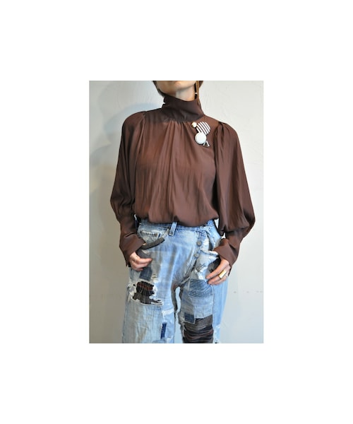 たっぷりギャザーのボリュームスリーブハイネックブラウス。 シワになりにくいポリエステル素材で アイロン不要です。 長いカフスがポイント。 後ろのネック部分にボタが付いています。 全6色展開。 ●商品一覧トップページはこちら↓ http://urx3.nu/LHHy