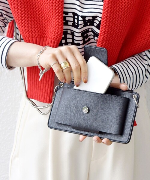 縦型にも横型にもなるマルチモバイルポシェットが《ROVERETO》より登場! 上品で使いやすいデザインのいアイテム。 表側にはスマートフォンが収納可能。ブランドロゴが入ったベルトもポイントになるデザイン。 また、小物を入れられるようにジップがついているので、スマートフォン以外に リップやカギなど細かいアイテムも入れられるので、ポーチやお財布としても◎ ショルダー部分は取り外し可能、取り付け位置によって縦型にも横型にもお使いいただけます。 定番のナチュラルとブラックに加え、コーディネートのポイントにもなるグリーンの3色展開。 幅広いスタイリングで合わせていただけるので、旅行などのおでかけにもおすすめ! ※末永く愛用頂く為に、アテンションタグ・洗濯ネームを必ずご確認の上、着用又はお取り扱い下さい。 ※屋外での撮影画像は、光の当たり具合で色味が多少異なって見える場合があります。商品の色味は、スタジオでの詳細画像をご参照ください。 ※画像の商品はサンプルです。 実際の商品と仕様、加工、サイズが若干異なる場合がございます。