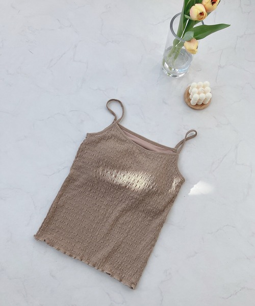 立体的なジャカードデザインが女性らしいカップ付きキャミソール インナーとして大活躍のカップ付きレースキャミソール。 ほどよい丈感のシンプルデザインだから、その日のコーデによって用途を変えてお使い頂けます。 立体感のあるジャカードデザインがアクセントに!!大人っぽく女性らしさをプラスしてくれます。 トレンドの、背中見せコーデや透け感のあるトップスにもぴったりな1枚です。 ▼商品について ・画像の商品はサンプルとなります。実際の商品と色味、仕様、加工、サイズ、素材等が若干異なる場合がございます ・サイト上のカラー名と、お届け商品に記載されているカラー名が異なる場合がございます。 ・商品の色味は、撮影場所や光のあたり具合などにより色味が違って見える場合がございます 。また、お客様のお使いのPCのモニター環境などにより色味が違って見える場合がございます。予めご了承の上ご注文下さい。 ▼お取り扱いについて ・着用またはお取り扱いの際は、アテンションタグや洗濯ネームを必ずご確認ください。 ▼返品・キャンセルについて ・着用、洗濯後の返品は致しかねます。 ・商品到着後、着用前に商品を確認して頂きますようお願い致します。 ♪商品のお気に入り登録 お気に入り登録した商品は、ラスト1点になった時、完売商品の再入荷、セールになった時にお知らせします。 ♪ブランドのお気に入り登録 新商品の発売、再入荷、セール情報など、ブランドのお得な情報を受け取ることができます。