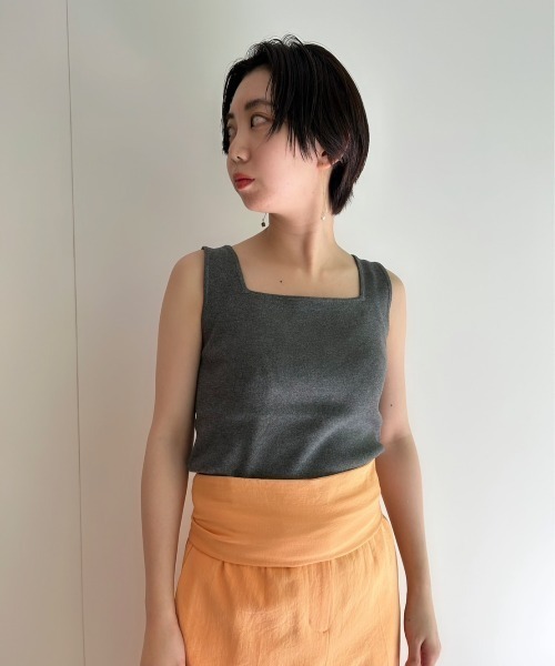 すっきりとした着こなし叶うニットタンクトップス。大人っぽく女性らしい雰囲気を演出してくれるスクエアネックもポイント。1枚での着用はもちろん、シャツやジャケットのインナー使いにもオススメのマルチアイテムです。 お手入れ方法:手洗い 透け感:なし 生地の厚さ:やや薄手 伸縮性:やや有り ■■ Designer's Voice ■■ 素肌に直接触れるので、もっちり・しっとりとした肌ざわりが心地よい糸で作成したニットタンクになります。 前後2way使用なので、合わせる洋服に対して衿ぐりのデザインを変更出来るのがポイント。 タイトめなシルエットですが、体のラインが出にくいサイズ感にしていますので、ぴったりタイトなシルエットが苦手な方にも着て頂きやすいサイズ感です。 こちらの一枚で様々な着回しを楽しめるニットタンクになります。 ※照明の関係により、実際よりも色味が違って見える場合があります。 またパソコン・スマートフォンなどの環境により、若干製品と画像のカラーが異なる場合もございます。予めご了承ください。 商品の色味は、商品単品画像をご参照下さい。 ※商品画像はサンプルのため、色味やサイズ等の仕様に変更がある場合がございますので、予めご了承ください。