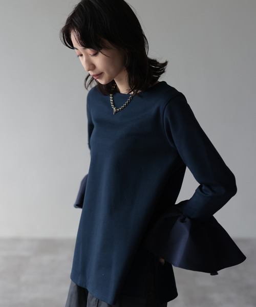 ♦ 2023 SEASONLESS COLLECTION ♦セレモニーやフォーマルシーンでも着まわせるラッフルスリーブトップス●ラッフルスリーブが華やかで上品な印象。●カットソー素材なので楽な着心地。●ボトムにインしても使いやすいサイドスリット入り。●ジャケットからラッフルスリーブを出して着用するのもおすすめ。●着脱しやすいコンシールファスナー◆COLOR◆ホワイト : ブラウス見えして使いやすい上品なホワイト。ネイビー : カジュアルにも着回しやすく顔写りの良いネイビー。ブラック : モード感のある上品なブラック。◆MATERIAL◆本体生地は伸びの良い薄手のポンチ素材を使用。さらっとした着心地の良い素材です。ラッフル部分はマットな光沢のあるグログラン素材です。■お手入れ方法:手洗い※お取扱いについては、商品についております品質表示にてご確認ください。■透け感: あり〇〇〇〇●なし■生地の厚さ:厚い 〇〇〇●〇 薄い(本体生地)■裏地: なし■伸縮性: あり■光沢感: なし※光の具合で色味が違って見える場合があります。★もっとお買い物を楽しむために★★商品のお気に入り登録お気に入り登録した商品は、セールの通知、ラスト1点の通知、完売カラーの再入荷通知などを受け取ることができます。★ブランドのお気に入り登録新商品の発売や再入荷、タイムセールの通知など、HERENCIA取扱いブランドのお得な情報を受け取ることができます。
