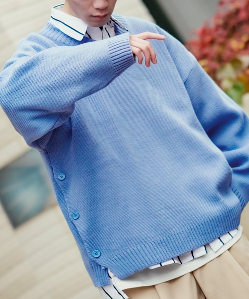 脇部分にスリットデザインを施した遊び心のあるニットセーターをご紹介。 ●ウールに比べチクチクしにくくお手入れも簡単なコットンニットを採用 ●脇の部分ボタン付きのスリットをデザインした変わり種の一枚 ●ドロップショルダー、ゆったりとしたシルエットが今どきな印象 ●使いやすいブラック、カーキ、春らしいライトブルーをセレクト 流行の発信地である韓国セレクトの一枚。 シンプルなデザインでチノパン、デニムパンツ、スラックスとの相性がよく きれいめカジュアルはもちろん、どんなスタイルにも合わせやすい一枚。 男性はもちろん、メンズライクな女性にもオススメしたい一枚です。