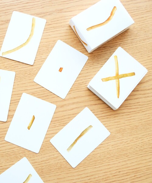 老若男女で盛り上がる!(ポテト食べたくなる) アーティスト・平山昌尚によるカードゲーム『Potato Game』。 ルールは簡単、神経衰弱(Concentration) と同様に裏面(ポテトが×になっているのが裏です)にして広げた中からめくって同じ形のフライドポテトを探し当てるだけ!シンプルでありながら難易度高めなカードゲームが出来上がりました。ホームパーティで盛り上がること間違いなし。 ※光の当たり具合やパソコンなどの閲覧環境によって実際の色味と異なって見える場合がございます。予めご了承ください。 ※商品の色味は商品単体で撮影した画像をご参照ください。 【スタッフレビュー】 スタッフ:Hsd サイズ感: 一般的なトランプと同じようなサイズ感です 素材感: カードの質感は滑らかで持ちやすいです◎ ポイント: HIMMAさんらしさ全開のユニークな発想が最高です◎ ■HIMAA(Masanao Hirayama) Born in Kobe in 1976. HIMAA is based in Tokyo and works in fields such as painting, drawing and performance. An artist who has attracted attention both domestic and foreign with his unique style and sense of humor like graffiti. HIMAA is active in a wide range of fields, including solo and group exhibitions, publishing zines and participating in book fairs. 【お気に入り機能を使ってお得な情報をGET!】 ●商品のお気に入り登録(ハートマークをクリック) ・残り1点、再入荷、お得なセールやクーポンなどの通知を受け取れます。 ・お気に入りした商品は一覧で閲覧でき、あとで見返すのに便利です。 ●ショップ・ブランドのお気に入り登録 ・新商品や再入荷、クーポン配布などいち早くブランドのお得な情報を受け取ることができます。 平山昌尚(HIMAA) 1976年神戸生まれ。絵画、ドローイング、パフォーマンスなど、香川を拠点に活動。
