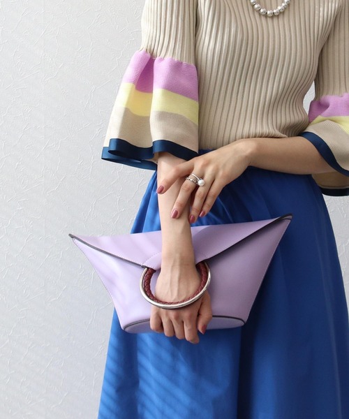 変形型のクラッチBAG。リングの持ち手がアクセントに。モードな雰囲気たっぷりのイチ押しBAGです!【cache cache / カシュカシュ】ガーリッシュテイストをベースに、ちょっと背伸びしたような 大人っぽさをMIXしたアイテムを展開するcache cache(カシュカシュ)。フランス語で「かくれんぼ」を意味するブランド名に相応しく、 可愛らしさと遊びゴコロを大切にしています。カラフルで素朴なハンドクラフトやキュートなモチーフ使いなど、 心躍るようなバッグを多数展開しています。 ※Attention※・取り扱いについては、商品についている品質表示でご確認ください。※照明の関係により、実際よりも色味が違って見える場合があります。またパソコン・スマートフォンなどの環境により、若干製品と画像のカラーが異なる場合もございます。 予めご了承ください。※商品のお問い合わせは、商品名下にある「85」から始まる8桁の番号をお知らせください。