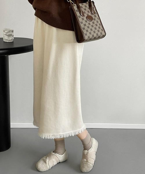 綺麗シルエット&雰囲気たっぷりのディテール暖かみのある表情がポイントのニットロングスカート。すっきりとした腰回りから裾に向かうIラインが女性らしいシルエットです。ニットとフリンジが絶妙なバランスで組み合わされたデザイン合わせるトップスの雰囲気により、カジュアルにもきれいめにも着こなせるスカートです。《スタイリング》タイトなカットソーをタックインしたり、ゆるニットを合わせたりと、様々なトップスと着回せるアイテムです。足元は、ロングブーツやショートブーツをちらりと覗かせたスタイルで今季らしいムードに。大人っぽさは保ちながら、さりげなくカジュアルダウンしてくれるアイテムです。※店頭及び屋外での撮影画像は、光の当たり具合で色味が違って見える場合があります。またご覧いただきますモニターや使用環境により実際の商品と多少色味が異なって表示される場合がございます。予めご了承をお願いいたします。★商品のお気に入り登録→【カートに入れる】右側の♡をクリック完売カラーの再入荷通知や、ラスト1点の通知、セールの通知も受け取ることができます。★ブランドのお気に入り登録→ブランドタグのページからお気に入りをクリック新作商品や再入荷などブランドのお得な情報を受け取ることができます。※ご注文いただいた予約商品のお届け時期の確認は、注文履歴ページより行えます。※他のキャンペーンにより、期間中に価格が変動する場合がございます。※セールは予告なく終了させていただく場合がございます。