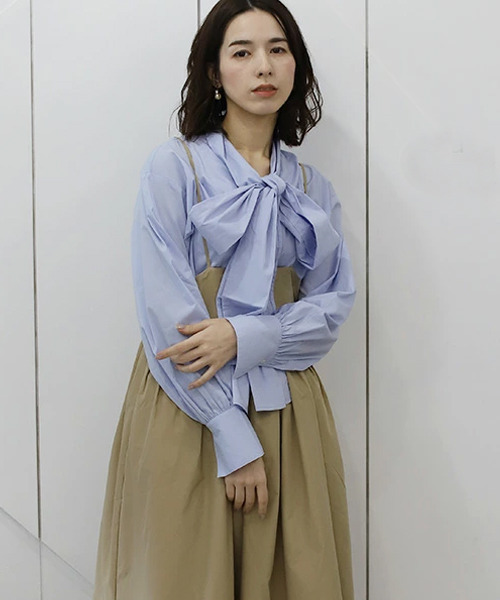 前後2WAYで着用できるクラシカルなボウタイブラウス。リボンの大きさもお好みで調節可能です。アクセサリー要らずでパっと華やかになるブラウスはこれからのシーズンに大活躍すること間違いなし。 [サイズ(cm)]M:総丈68 バスト100 裄丈78 [お手入れ方法]手洗いにてお手入れしてください。