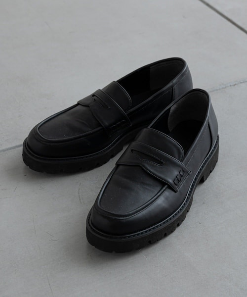 シンプルながらも厚底でトレンドライクな印象のコインローファースタイリングを選ばず様々なアイテムにマッチします。フィット感のある履き心地で疲れにくいのも嬉しいポイント。着脱も楽ちんで、気軽に着用いただけます。シーズンレスで通年活躍するアイテム!シンプルなデザインなので、ソックス合わせなどもおすすめです。着用感レビュー普段27cm(VANS、NIKE、NewBalance)26.5cmで厚手の靴下も履けるくらい。普段履きにはちょうどいいサイズです。人によっては踵が抜ける感じもあるかもしれませんがローファーなので違和感は感じませんでした。▼気になる商品を登録ハートをクリックして《お気に入り登録》がオススメです!セール情報や完売カラーの再入荷通知、ラスト1点の通知などを受け取ることができます!▼ブランド新商品や再入荷など、ブランド情報をいち早く受け取ることができます!※画像の商品はサンプルです。 実際の商品と仕様、加工、サイズ、素材が若干異なる場合がございます。