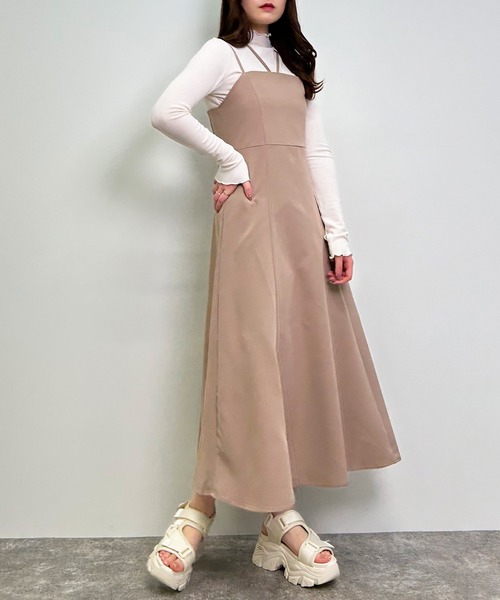 2023 SS 春夏アイテム 【トレンドのホルターネックデザインで再登場!大人気のキャミワンピース】 ▼Design ・大人気のキャミワンピが取り外し可能なホルターネックデザインでカムバック! ・どんなアイテムとも合わせやすい万能キャミワンピは、大人カジュアルな着こなしからフェミニンなスタリングまで自由自在◎ ・高めの位置に入れたウエストラインから広がるフレアシルエットで、可愛らしさと上品さを演出してくれます。 ・ウエストの切り替えデザインで足長効果&スタイルアップも期待できます。 ・バックにギャザーゴムを配し、フィット感よく着こなせます。バックのジップで脱ぎ穿きも楽ちん。 ・季節やスタイルの印象問わず着まわせるので、お手持ちのアイテムと組み合わせて使いやすい◎ ▼Styling ・1枚で着てもインナーに重ねてもサマになるデザイン。 ・ふんわり広がるフレアシルエットで、フェミニンなアイテムと合わせるとより可愛らしさを引き立てます。 ・大人カジュアルに見せるならカットソーやシアートップスをレイヤードするとこなれ感が出て◎ ・トレンドライクにシャツやカーディガンを上に羽織ると、印象が変わります。温度調節にも最適。 ・自分好みのスタイリングに合わせて、着まわしていただけるアイテムです。 ▼Fabric ・ポリエステルを使用しているので生地が丈夫で、型崩れもしにくいです。 ・ホルターネック取り外し可能。 ・バックファスナーあり。 ・肩紐調整可。 ----------------------------------------- 【以下クロ参考。カラーにより多少の誤差あり】 ・透け感:透けない ・伸縮性:なし ・生地の厚さ:薄い ・裏地:あり ----------------------------------------- 同デザインのミニ丈の商品も販売中◎ 【スタッフ着用コメント】 身長155cm 万能キャミワンピースに新デザインが登場! 上品な広がり方のフレアシルエットが女性らしく着こなせます。 ホルターネックは取り外し可能で、カジュアルにもフェミニンにも合わせやすいアイテムです。 今季トレンドのキレイめブラウスに重ねるのが個人的におすすめ。 シンプルに着こなしたいときはカットソーとスニーカーで大人カジュアルにするとこなれ感が出ます! とにかく着回し力バツグンなので、1枚は持っておきたい優れものです。