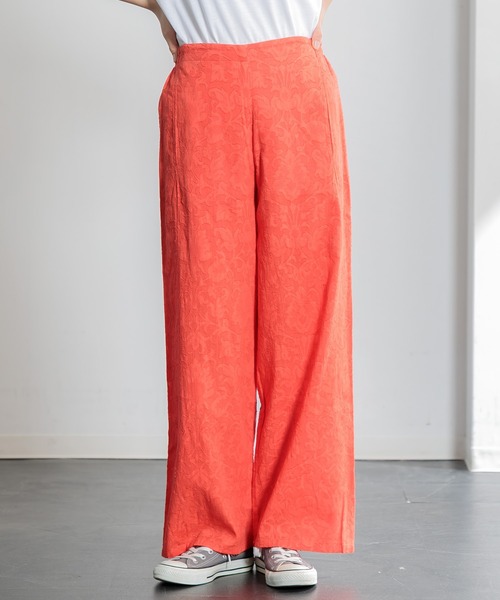 【リラックスできる履き心地。存在感ある花柄ジャガードのイージーパンツ】トレンドライクなジャガードイージーパンツ。立体的な花柄カットジャガードが存在感抜群です。コットン100%の天然素材で柔らかくナチュラルな風合いも特徴。清涼感もあり、シンプルで軽い仕上がりになっています。ワイドすぎずほどよいシルエットに、ウエストはオールゴムでリラクシーな着心地。ベーシックに着用いただけるブラック、華やかさが目を惹く朱赤の2色展開です。ーーーーーーーーーーーーーー透け感:なし伸縮性:なし裏地:あり光沢:なし生地の厚さ:薄手ーーーーーーーーーーーーーー【確認事項】*照明の関係により、実際よりも色味が違って見える場合があります。またお客様のパソコン・スマートフォンなどの環境により、若干製品と画像のカラーが異なる場合もございます。予めご了承ください。*取り扱いについては、商品についている品質表示でご確認ください。▼この商品のお気に入り登録▼カートボタン付近の♡をクリックして商品をお気に入り登録をすると、完売カラーの再入荷通知や、ラスト1点の通知、セールの通知などを受け取ることができます。▼AMERICAN RAG CIEのお気に入り登録▼「♡お気に入りショップに追加」をクリックすると、新商品や再入荷等、AMERICAN RAG CIEの最新情報を受け取ることができます。