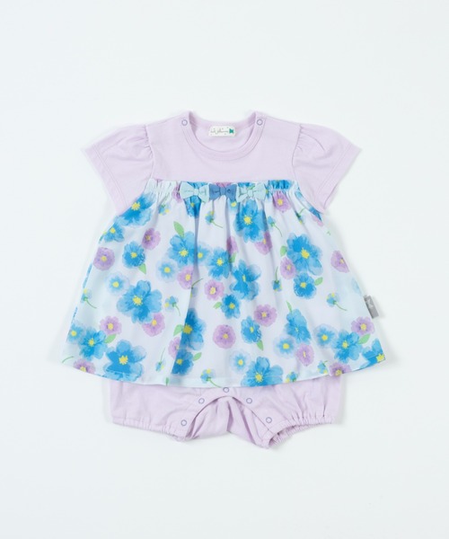 鮮やかな水彩花柄シフォンワンピースを重ね着したようなデザインのショートオール。胸のリボンがワンポイント♪身頃は肌触りの良い天竺を使用しています。●生地の厚さ:普通●裏地:なし●ポケット:なし●伸縮性:あり●透け感:なし 【KP/ケーピー】 ヨーロピアンカジュアルをベースに、流行のエッセンスを採り入れながら品があり、それでいて元気な女の子の可愛らしさを表現。服だけでなく帽子や靴、バッグ . . . . .といった小物まで女の子のさまざまなシーンに対応できるアイテムを提案していきます。